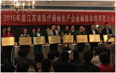 4月27日,江蘇省藥監局在南京曙光大酒店召開全省醫療器械生產企業誠信總結表彰大會,表彰2013-2015年度江蘇省醫療器械生產企業誠信單位,江蘇省食品藥品監督管理局黨組書記、局長胡曉抒到會并作重要講話。