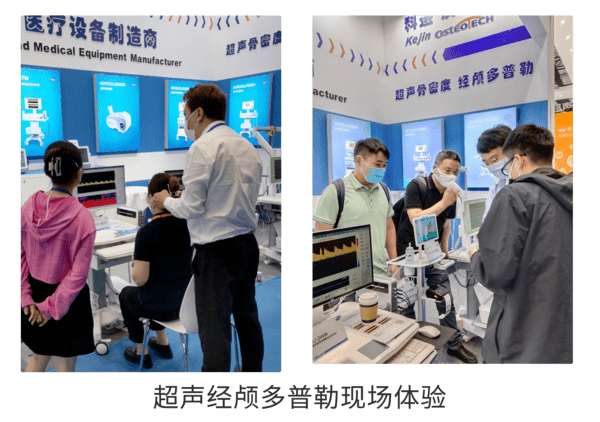 科進廠家展出多款超聲骨密度儀設備,超聲骨密度儀跟骨系列、超聲骨密度儀橈/脛骨系列、無線超聲骨密度儀系列。眾多型號的骨密度儀產品吸引眾多參觀者現場體驗。