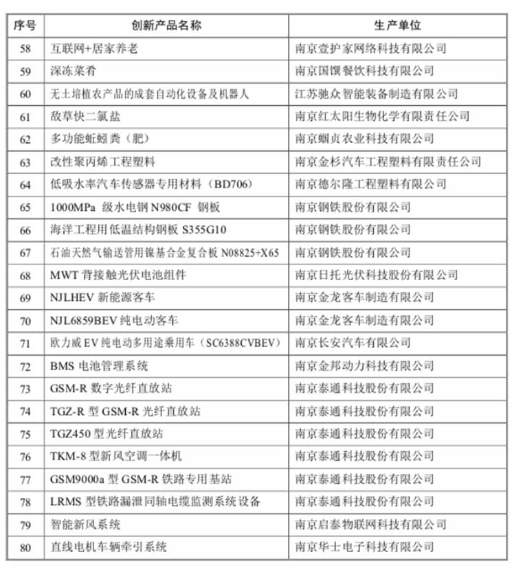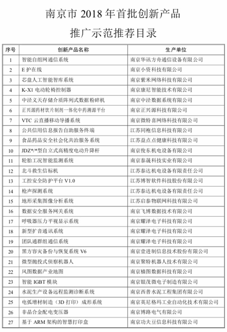 市政府關于印發南京市2018年首批創新產品推廣示范推薦目錄的通知