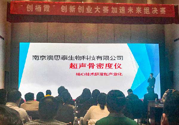2019年4月15日,首屆“創棲霞”創新創業大賽頒獎典禮在南京紫東生態會議中心隆重舉行,澳思泰參賽項目“超聲骨密度儀核心技術研發”榮獲“加速未來組”三等獎。