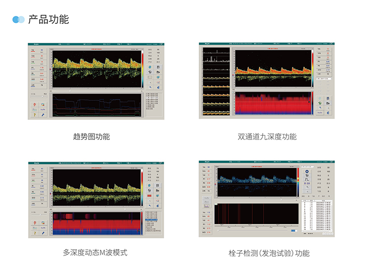 支持單通栓子與雙通栓子檢測模式,在血管選擇區還可選擇進行屏氣試驗與腦死亡試驗